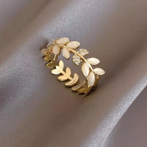 خاتم الأوراق مرصع بالصدف و الزركون