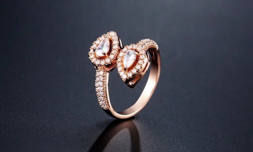 خاتم مطلي ذهبي مرصع بقطع الزركون