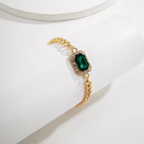 اسوارة مطلية بالروديوم بقطعة الزركون الأخضر