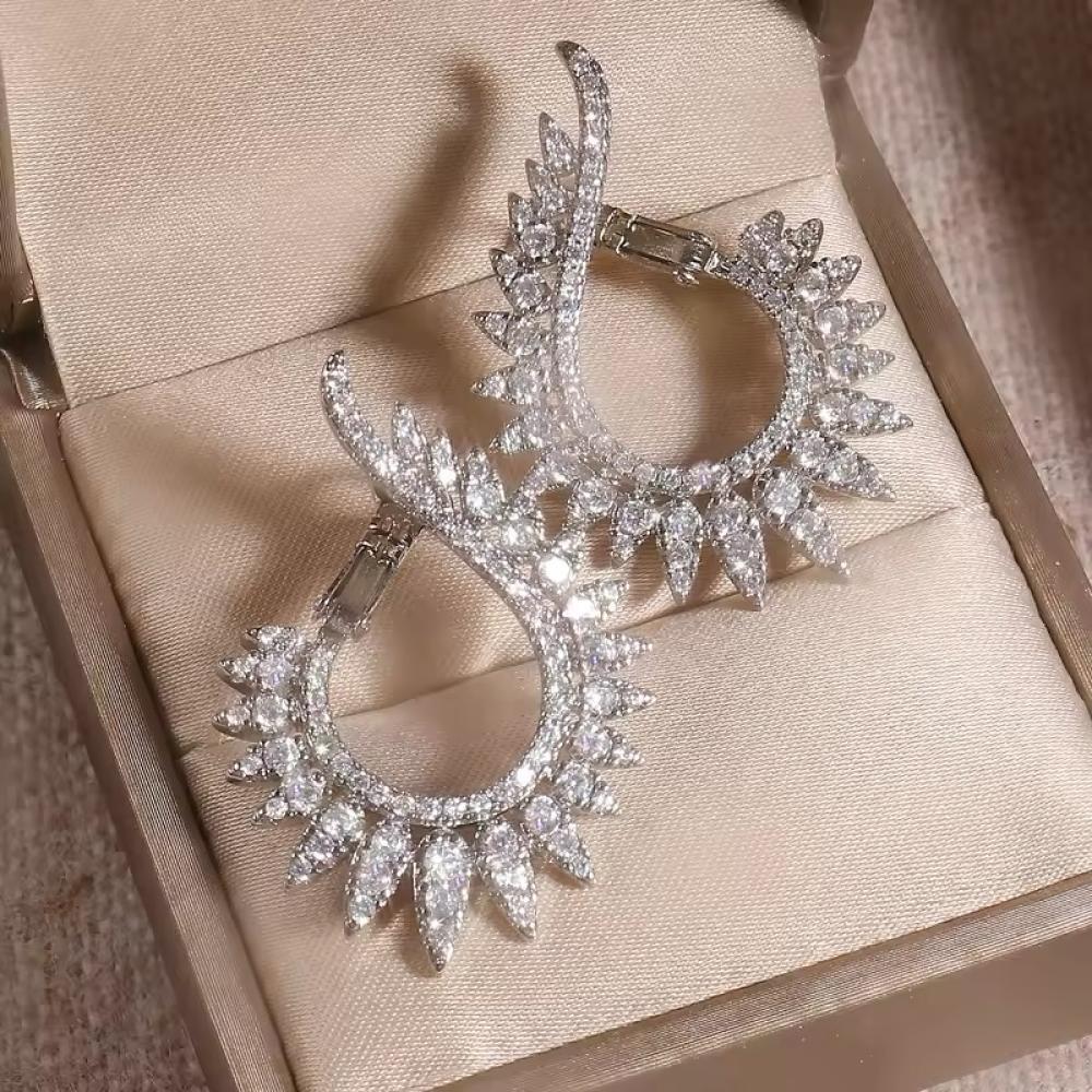 حلق فضة ذهبي مرصع بالكرستال و الزركون ( كبير )
