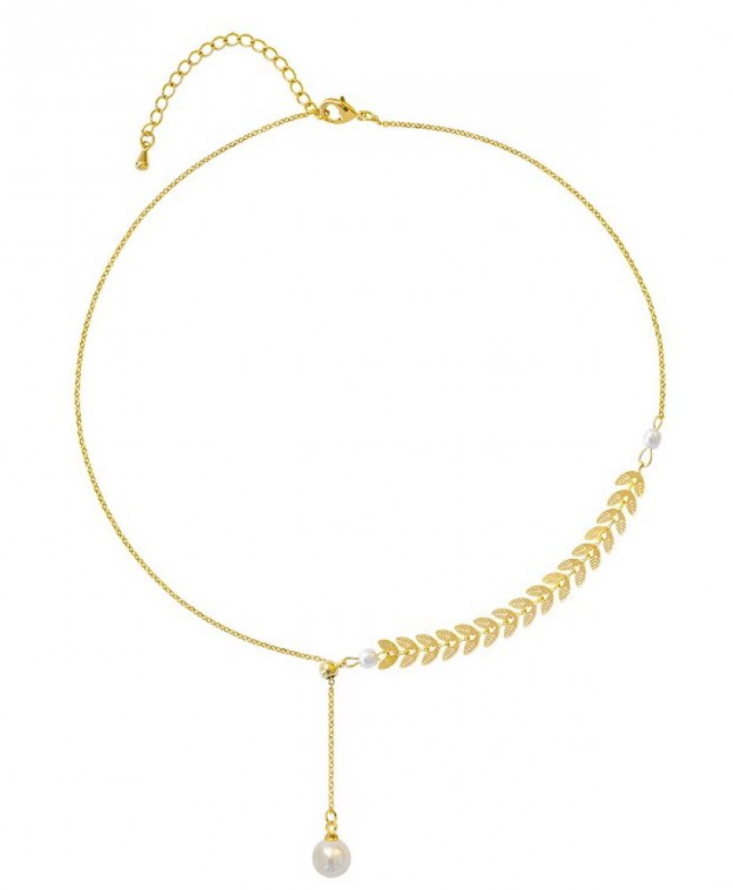 عقد مطلي بالروديوم مرصع بقطع اللولو