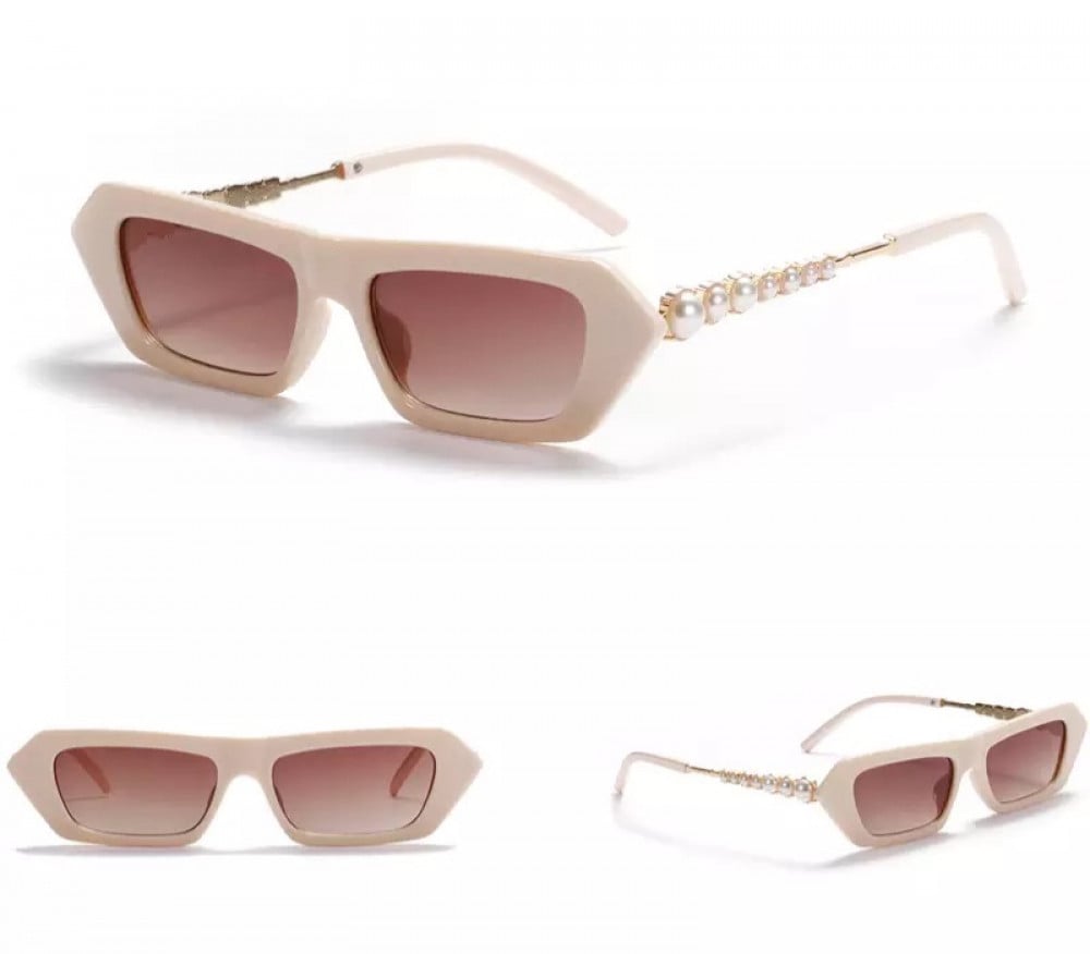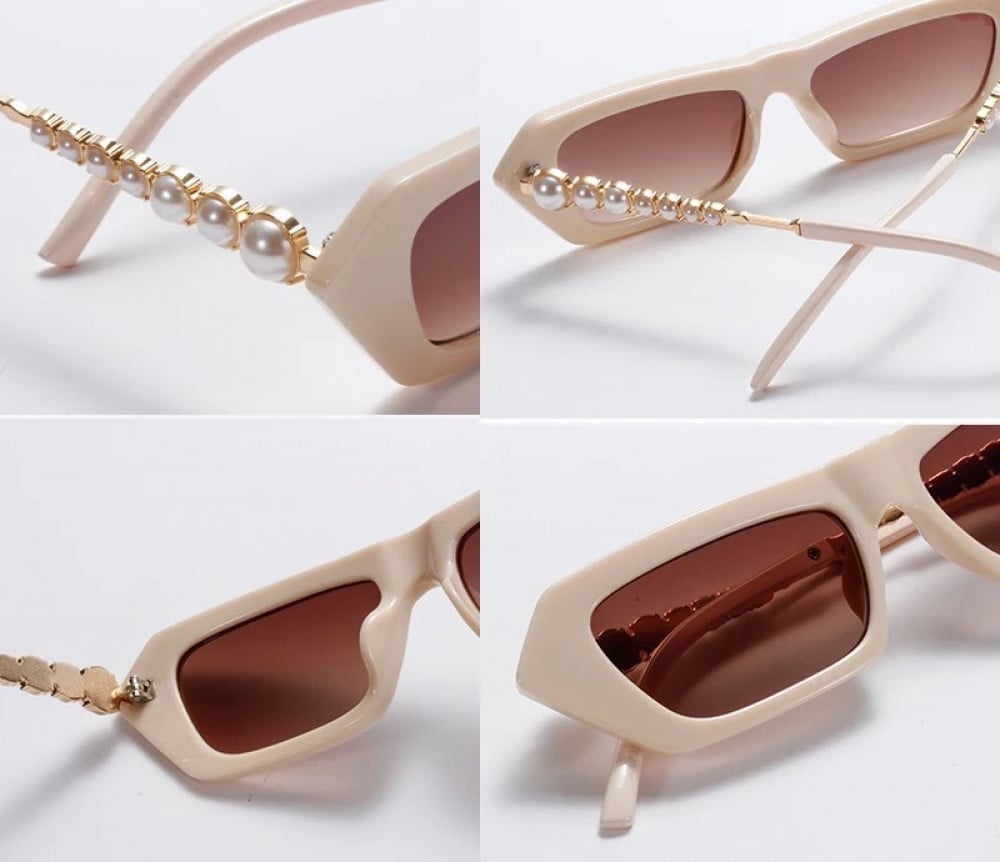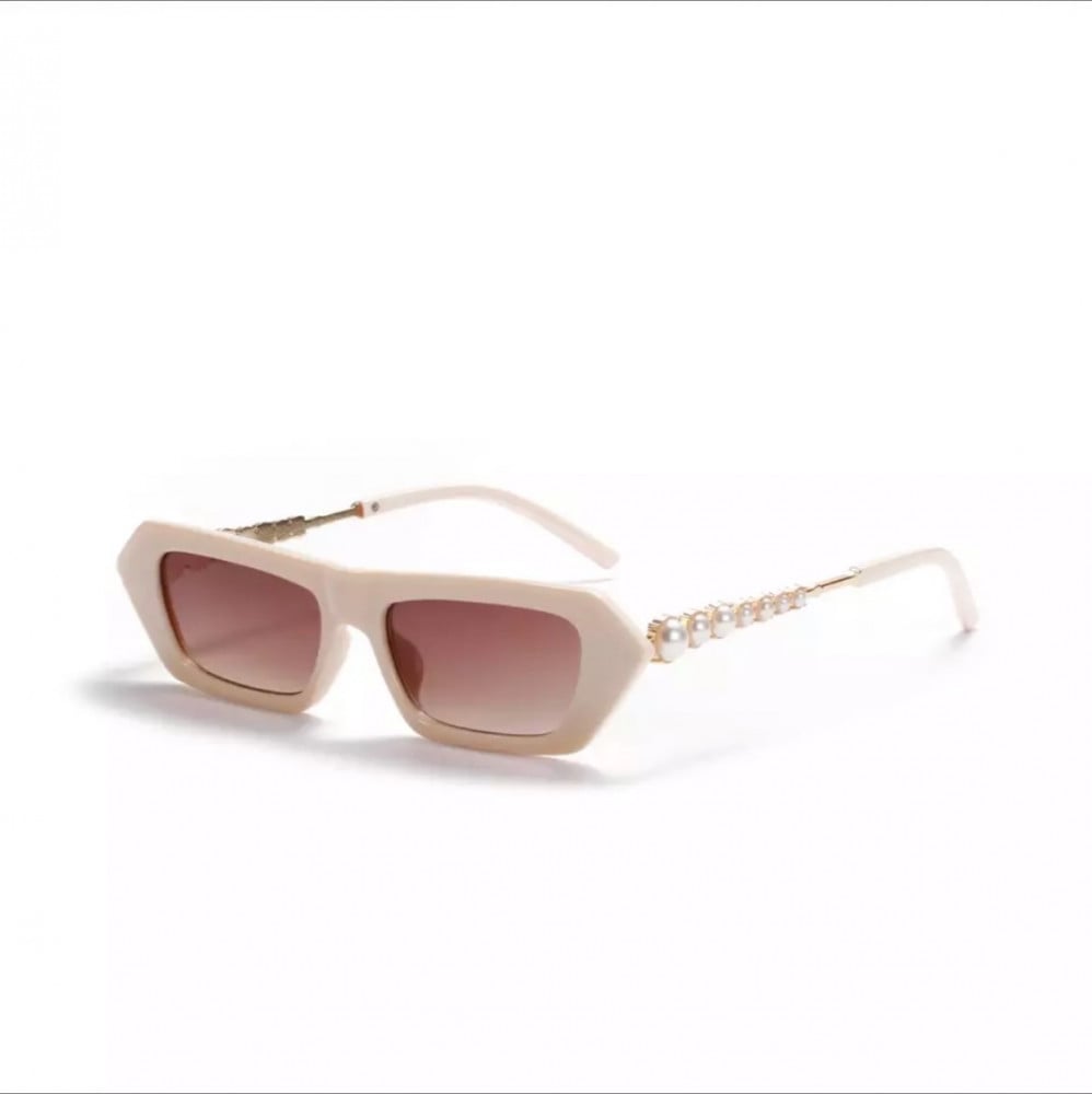 نظارة ريترو ڤنتج مرصعة بقطع اللولو / بيج