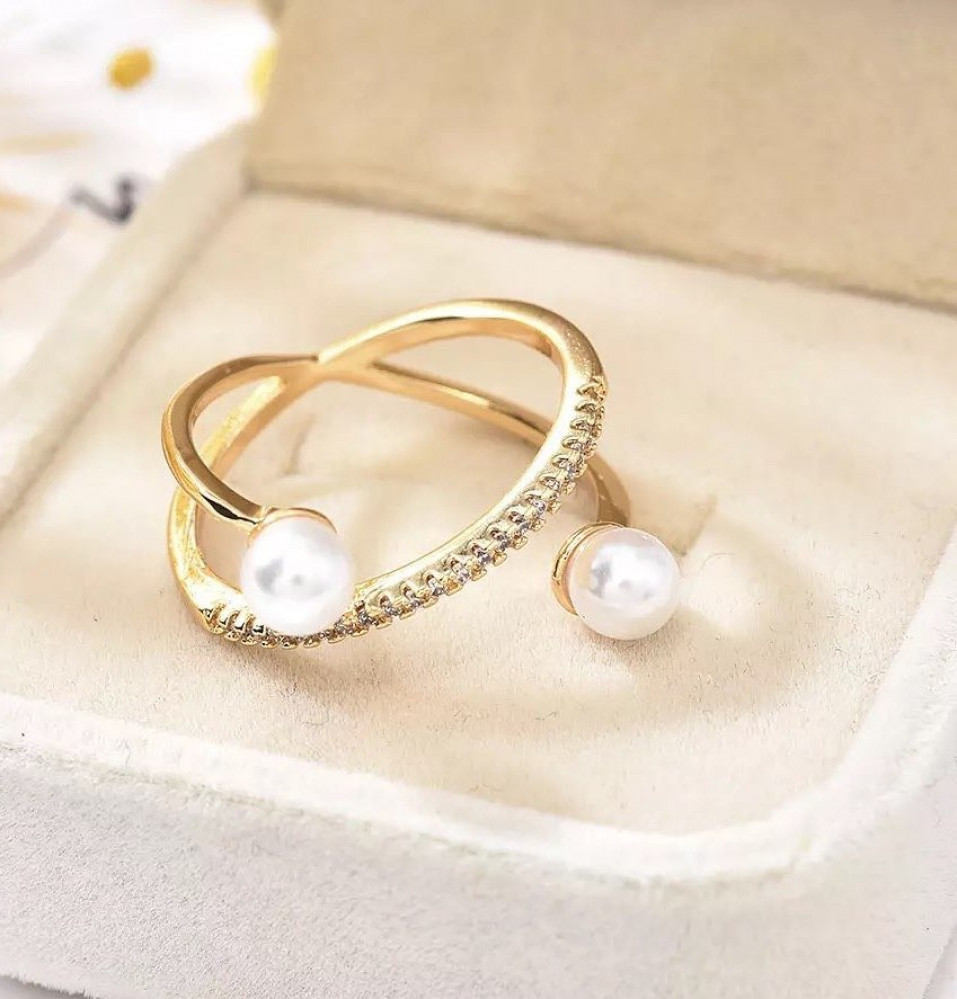 خاتم مرصع بقطع الكرستال و اطراف اللولو / مقاس 7