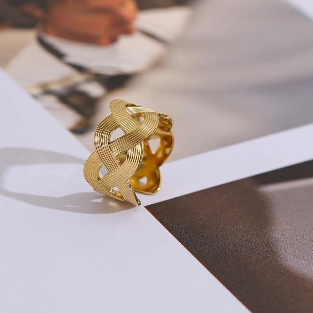 خاتم فولاذ مطلي ذهبي