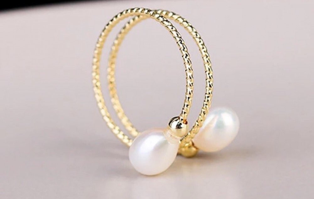 حلق مطلي بالروديوم مرصع بقطع اللولو
