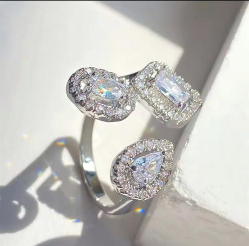 خاتم مطلي بالروديوم بتعليقة لولو و زركون