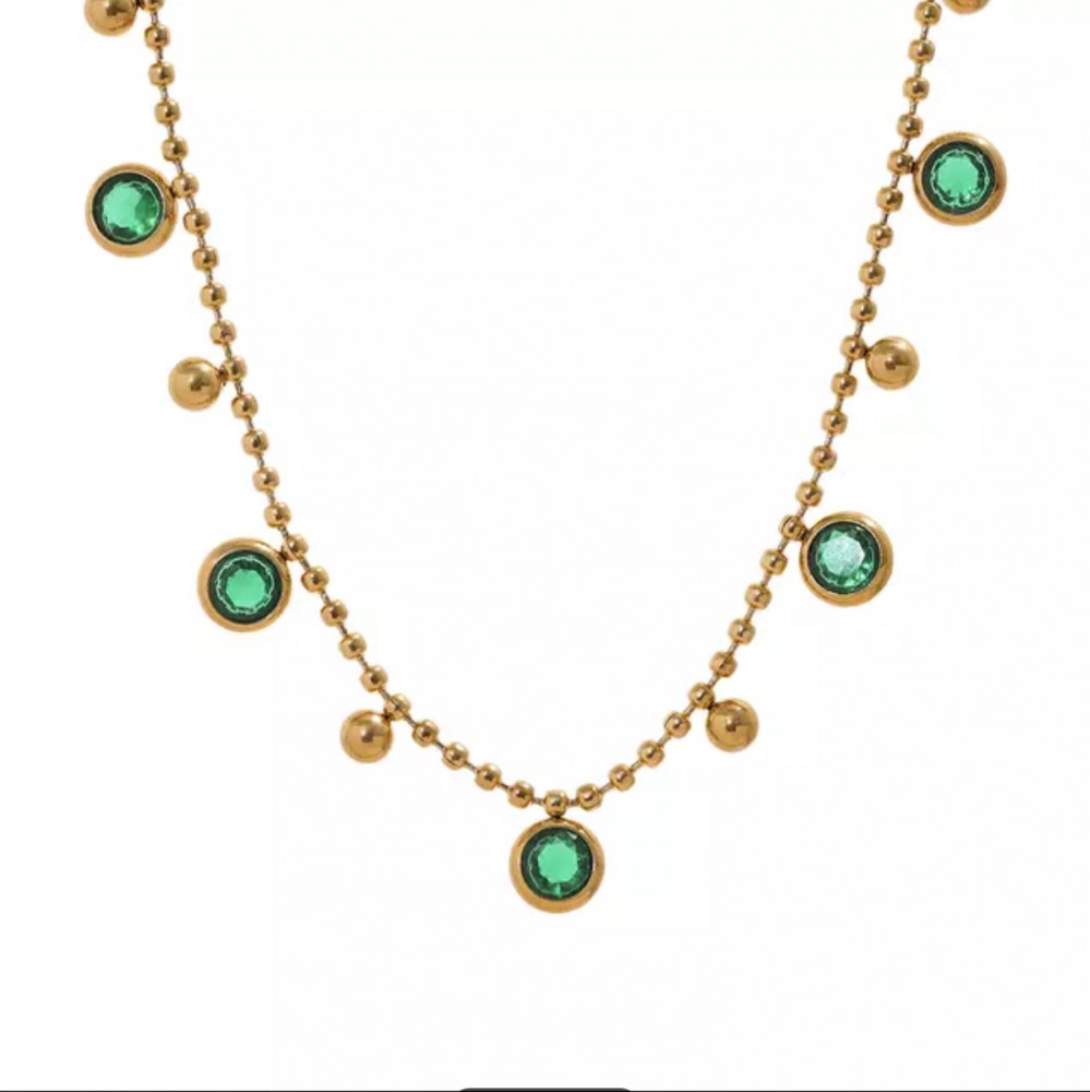 شوكر ستيل ذهبي مرصع بالزركون الأخضر